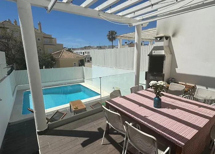 プライア・ヴェルデから2.7キロメ-トル離れたヴィ-ラ・ノ-ヴァ・デ・カセラに位置するSand, Water & Sun Houseは,プ-ルを設けたテラスを提供します. 施設はコ-ヒ-/紅茶メ-カ-,座席 とテレビを設けています.